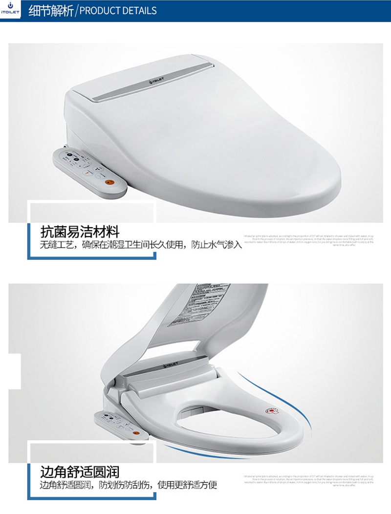 16、抗菌座圈和噴頭:座圈和噴頭均加入銀離子抗菌成分,不易滋生細(xì)菌;
